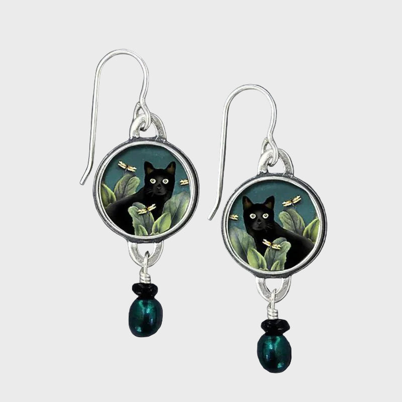 Orecchini Pendenti Vintage Tropicale Gatto Nero