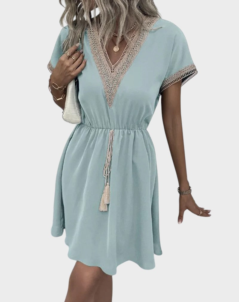 Bianca – Vestito Boho Chic con Scollatura a V e Vita Sottolineata